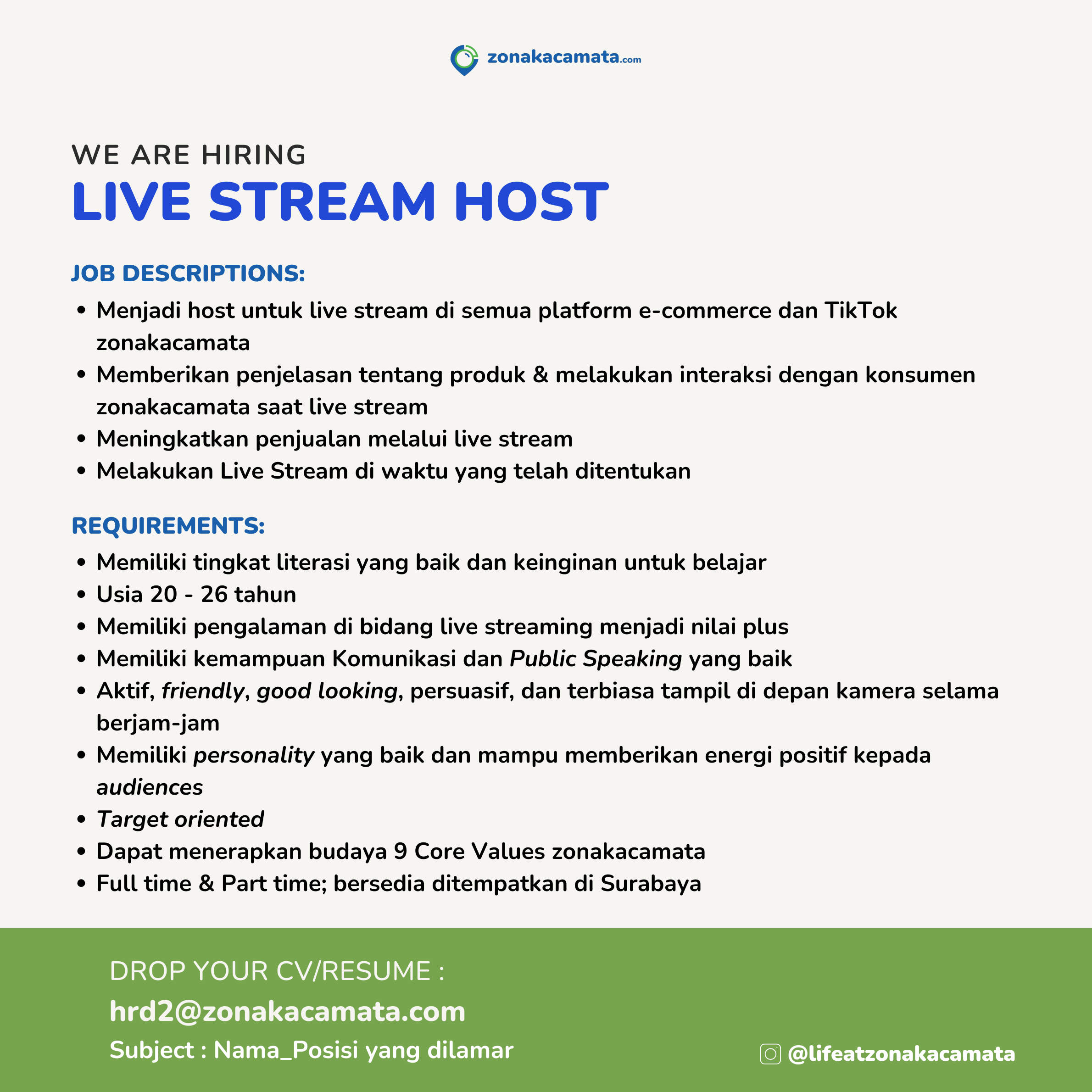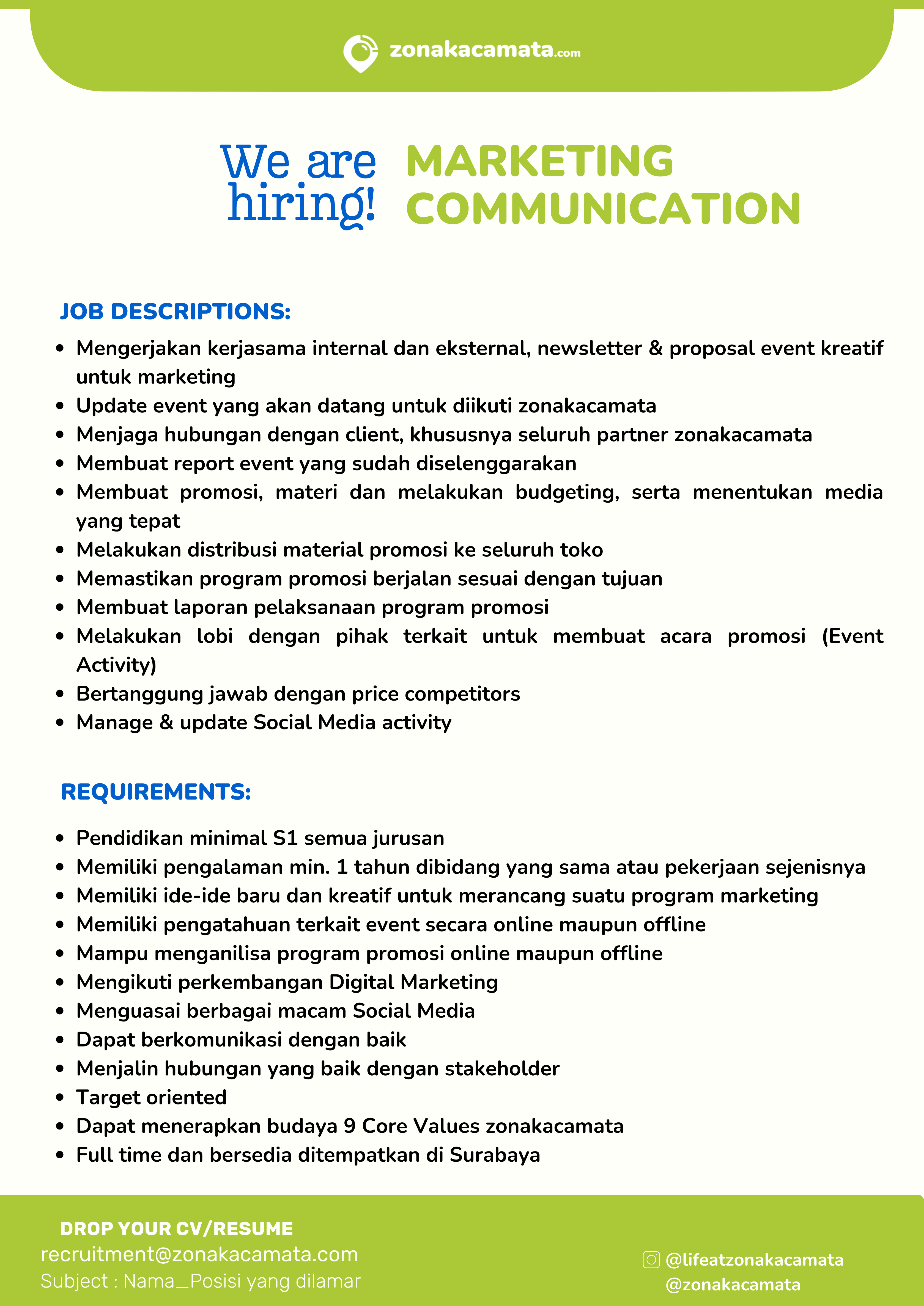 Lowongan Kerja zonakacamata.com, Maret-April 2025
