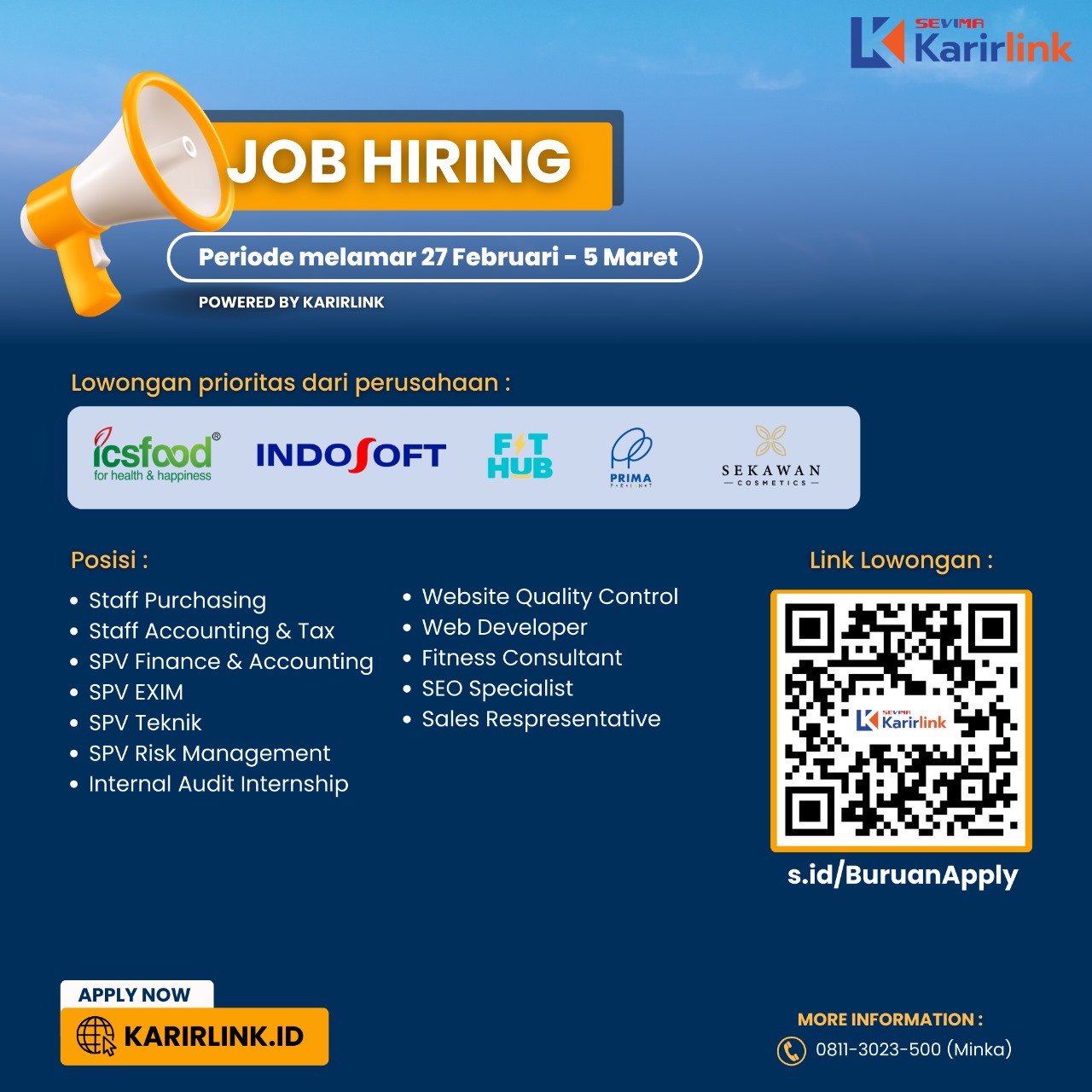 Lowongan Kerja prioritas dari perusahaan mitra Sevima (KarirLink), Periode Melamar 27 Februari s.d. 5 Maret 2025