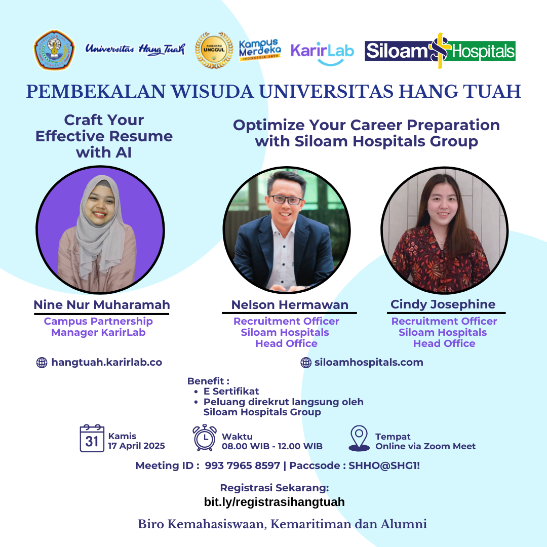 Universitas Hang Tuah bekerja sama dengan Universitas Indonesia dan Platform KarirLab beserta sejumlah PTN dan PTS Se Indonesia mengadakan Hybrid Career Fair Terbesar Se-Indonesia
