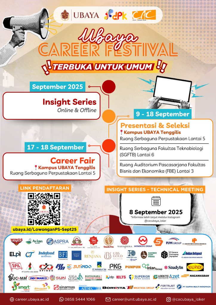 Pada 2 Oktober 2025 Pusat Karir BKKA UHT sukses menyelenggarakan Pembekalan Karir untuk Calon Wisudawan UHT Periode II Tahun 2025 yang dilaksanakan secara online via Zoom, menghadirkan pembicara dari Kinobi : Dinda Angkotasan dan dari IBIMA Indonesia : Farras Abyan. Read more