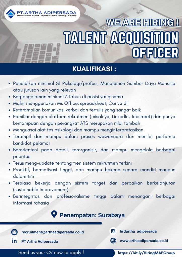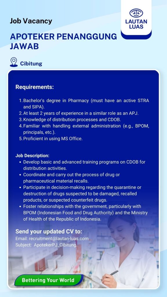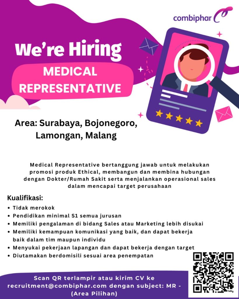 Saat ini COMBIPHAR Group sedang membuka lowongan posisi Medical Representative untuk beberapa area Surabaya, Malang, Bojonegoro dan sekitarnya.Jika Anda tertarik, silahkan melamar melalui link berikut ini https://bit.ly/RECDMRCMB Hanya kandidat sesuai dengan kualifikasi yang akan diproses lebih lanjut.Salam Sehat Combiphar! Hiring Read more
