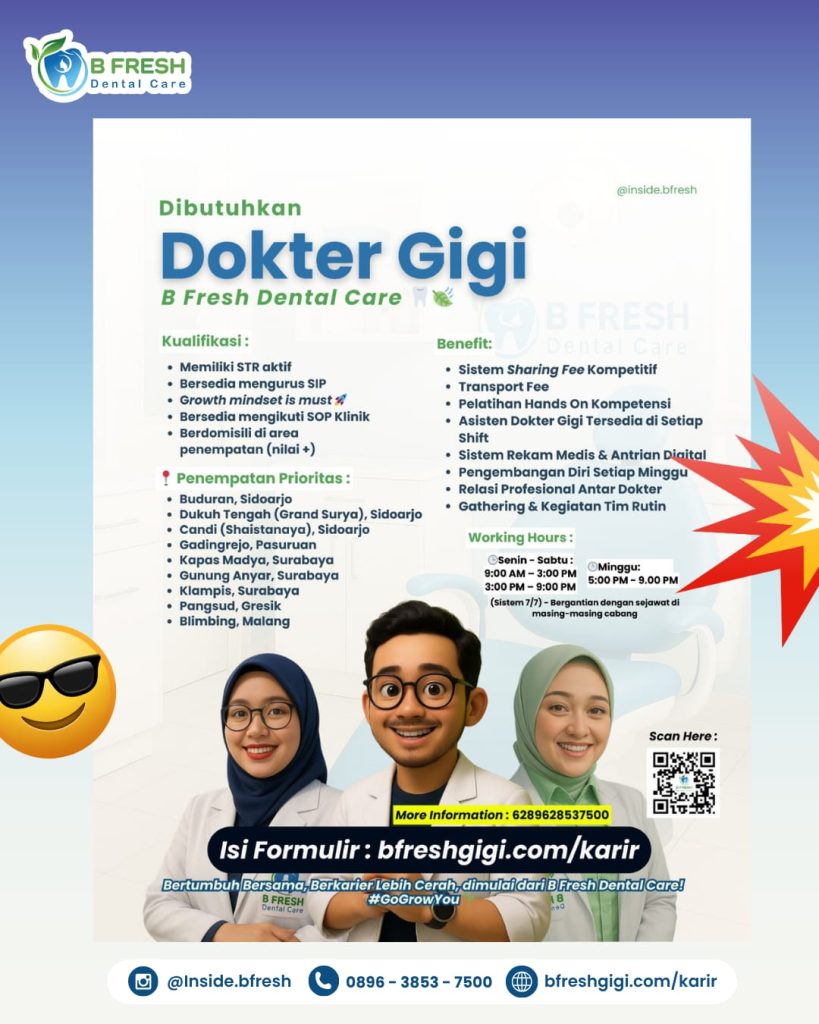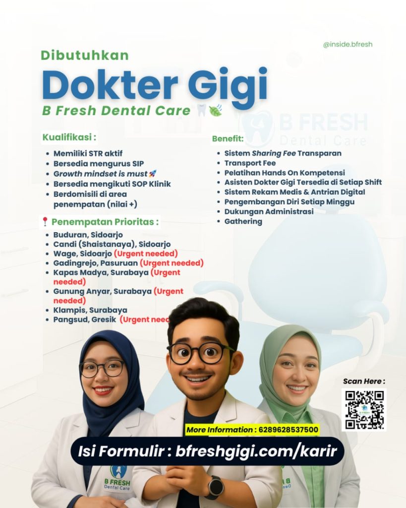 Lowongan Kerja Dokter Gigi di B Fresh Dental Care, Desember 2025