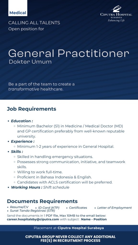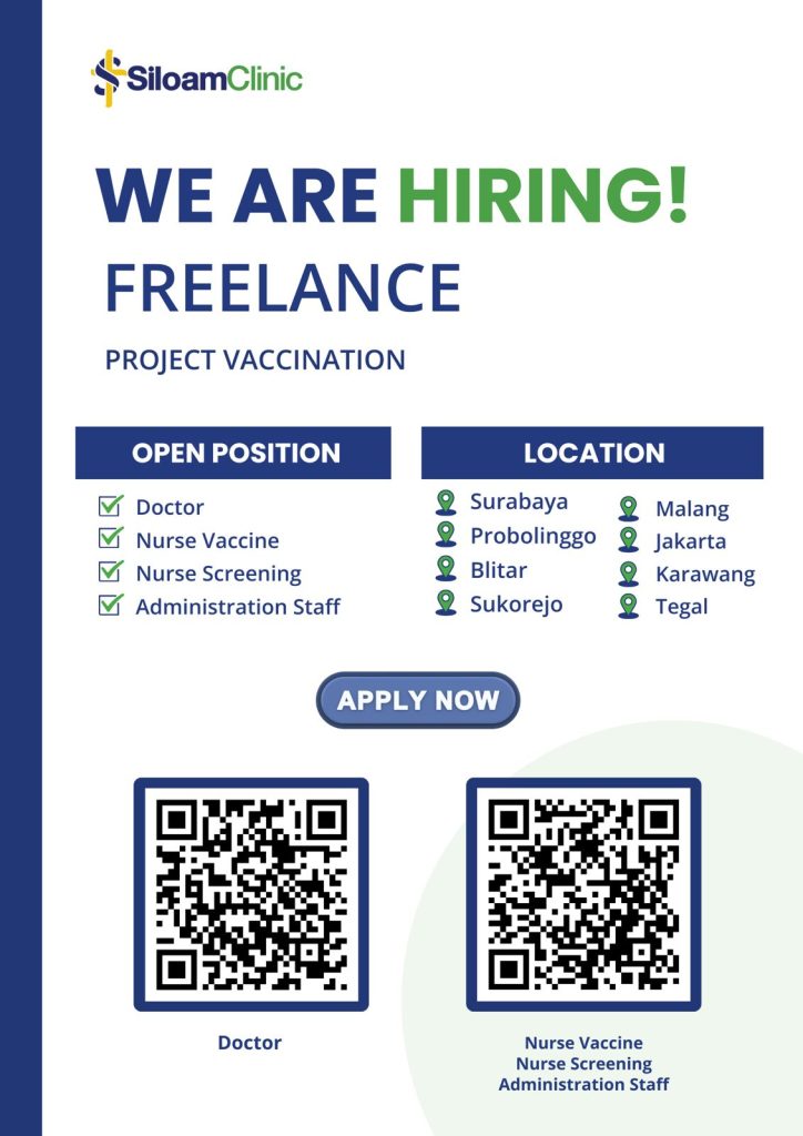 HIRING FREELANCERS!!PROJEK VAKSINASI 💉🩺 Kesempatan untuk bergabung dengan tim vaksinasi profesional di berbagai kota! 💼 Posisi yang Dibuka: 📍 Lokasi: ✨ Benefit: 🕒 Jenis Kerja: Freelance – Berdasarkan jadwal project 🎓 Kualifikasi: Dokter dan perawat dengan SIP dan STR yang Read more