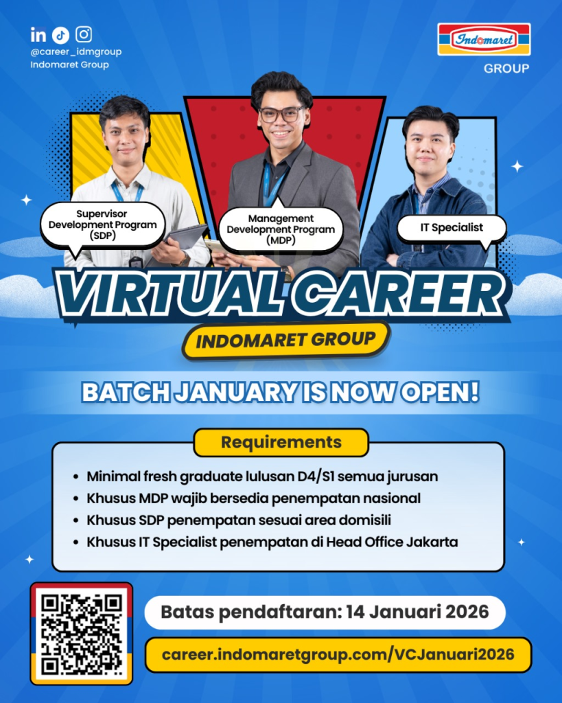 🚨 JOB EVENT INDOMARET GROUP – SEPTEMBER 2025 🚨 Fresh Graduate, waktunya kamu ambil peluang ini! 🎓Di bulan September, Indomaret Group akan mengadakan beberapa Job Event yang dibagi menjadi 4 area di Indonesia! Selain berkesempatan untuk ikut proses rekrutmen secara Read more