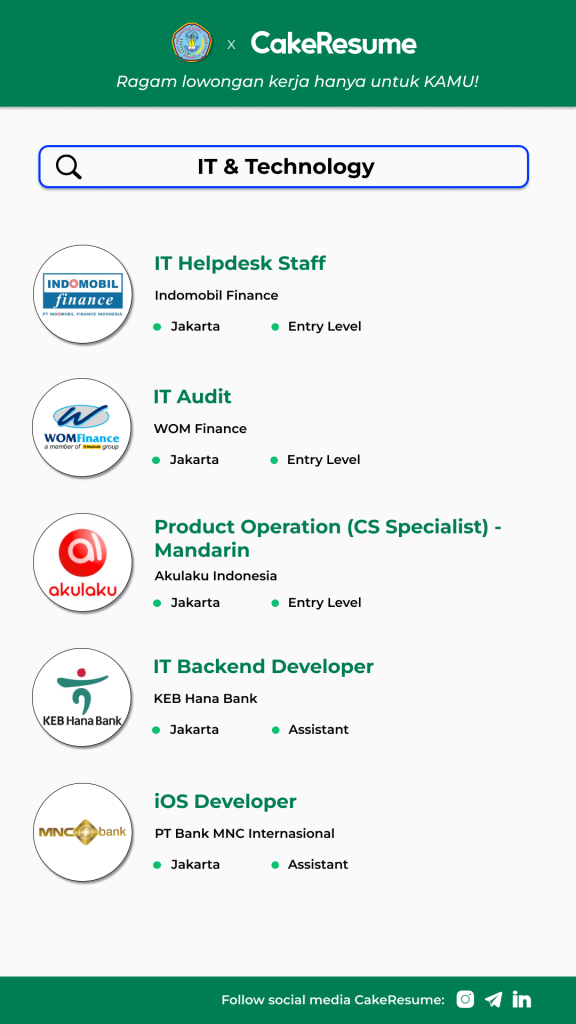 Lowongan IT & Tech lainnya- https://cakeresume.me/KEcxB