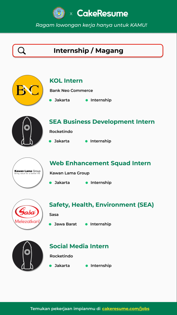 Lowongan Internships lainnya- https://cakeresume.me/TOkX4