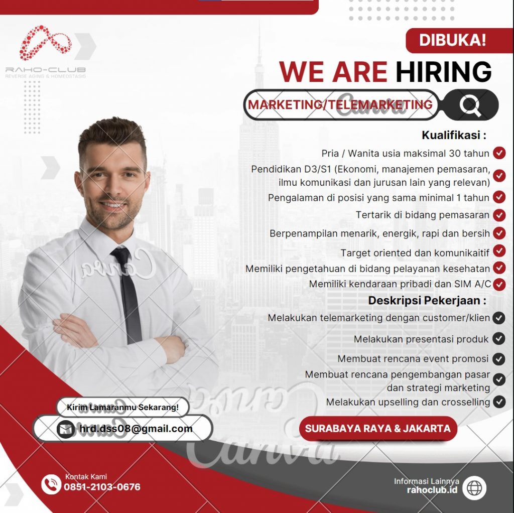 Lowongan Kerja Raho Club, Oktober 2024