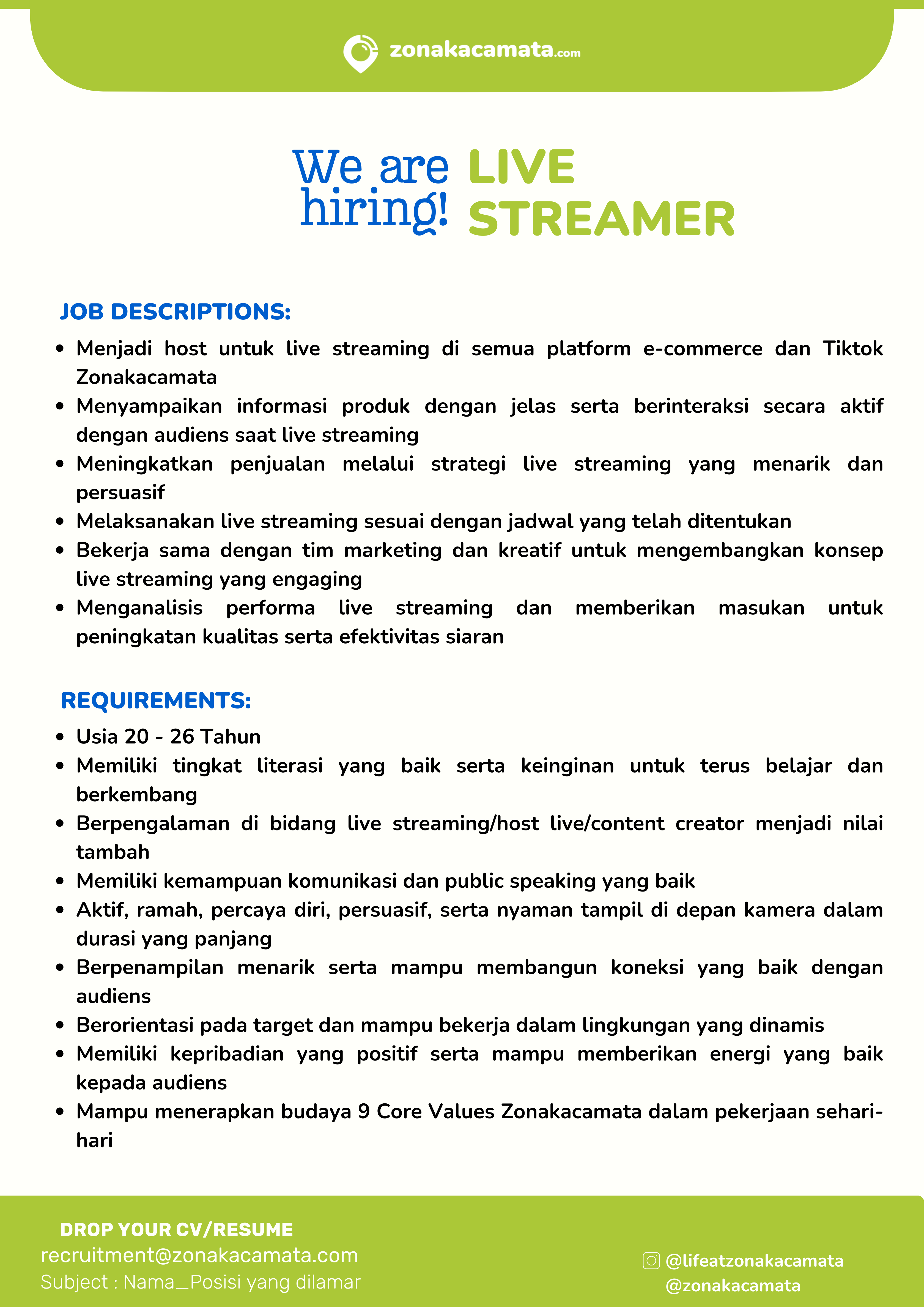 📩 Drop your CV at: recruitment@zonakacamata.com